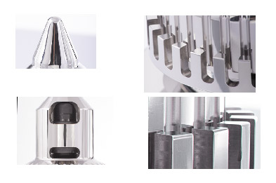 陽軸承上有定子剪切內(nèi)刃,攪拌頭是轉(zhuǎn)子剪切外刃,物料顆粒被加速剪切形成均一的小粒徑